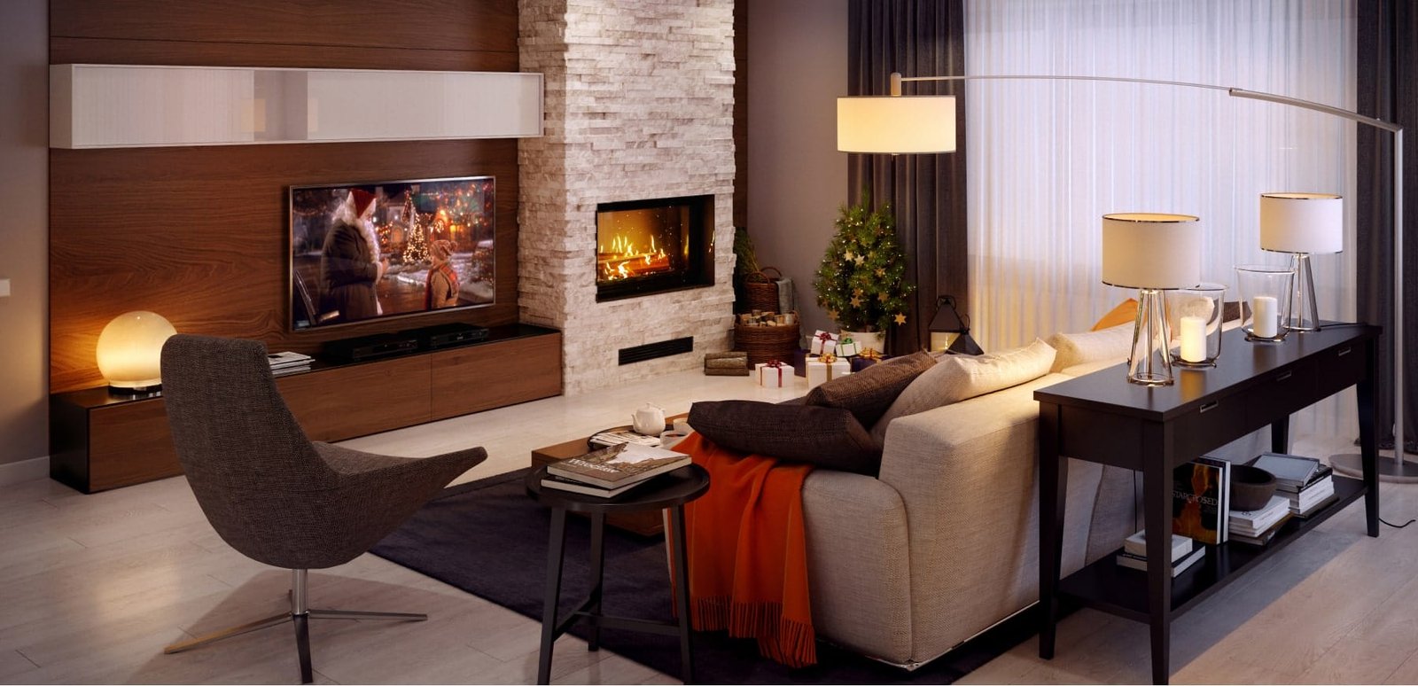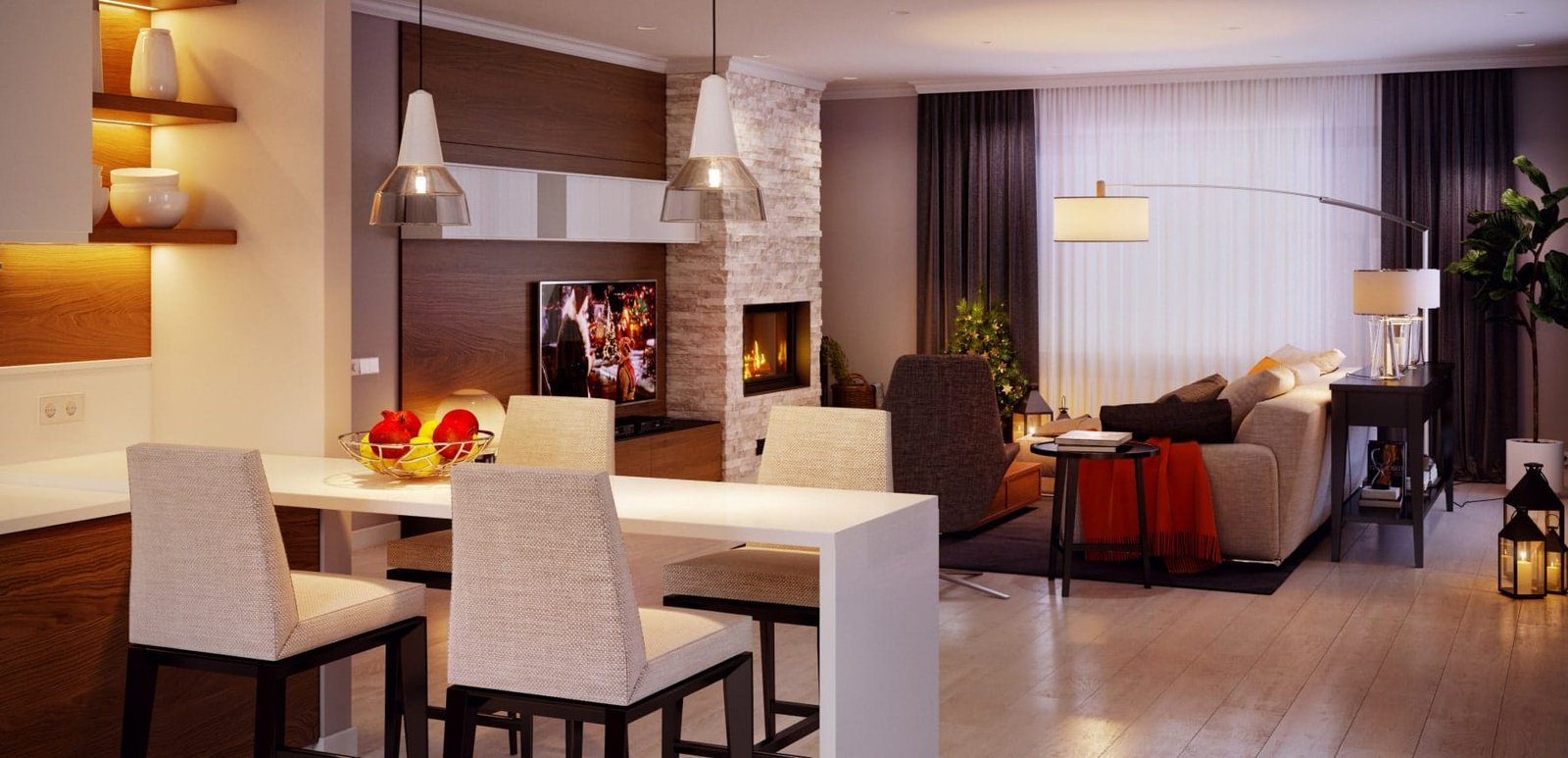 Дизайн-проєкт приватного одноповерхового будинку загальною площею 140 кв.м. був розроблений для сім'ї з 3-х чоловік. Будинок знаходиться в мальовничому місці, в сосновому лісі в селі Мошни. Ми почали цей проєкт напередодні 2018 року. А вже через рік, в очікуванні нового 2019 року, господарі дивилися свої улюблені комедії у цьому будинку, загадуючи бажання.