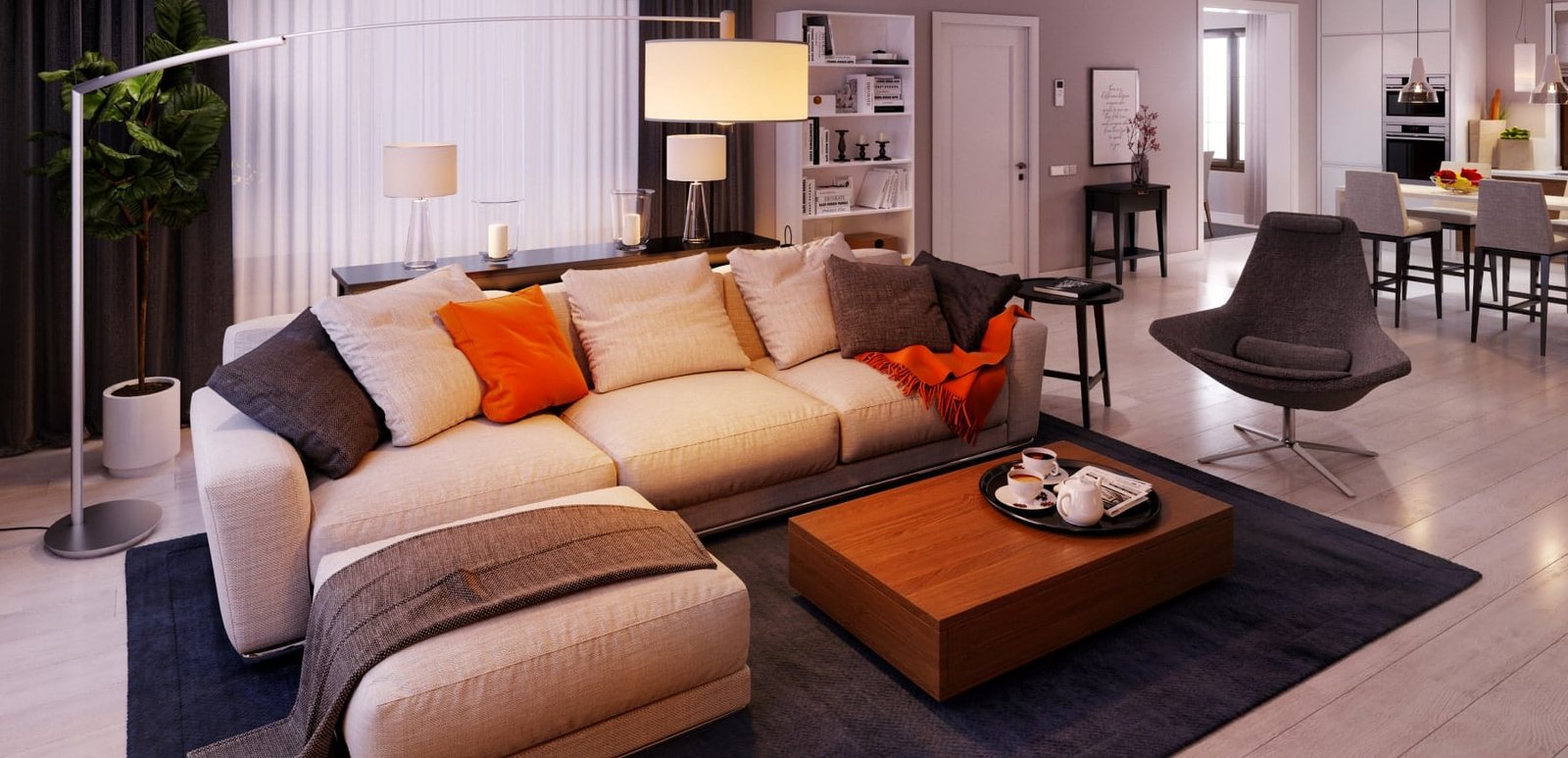 Заміський будинок з сучасним і легким дизайном. Центром композиції і місцем, де збирається уся родина, став великий дров'яний камін та м'яка зона відпочинку. Кухня з відкритою вітальнею і великими вікнами, що рясно наповнюють будинок природним світлом, плавно переходять в їдальню.