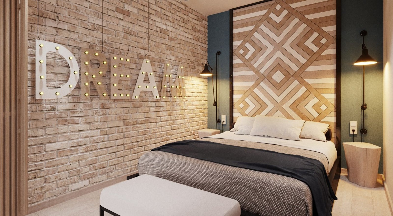 Розробляючи цей проєкт, ми забрали міжкімнатну перегородку, об’єднав воєдино вітальню і їдальню. Зонувати приміщення та створити цільний образ допомогла цегляна стіна з двома симетричними отворами, які ми обіграли арочною формою з брутальною фактурою цегляної кладки.