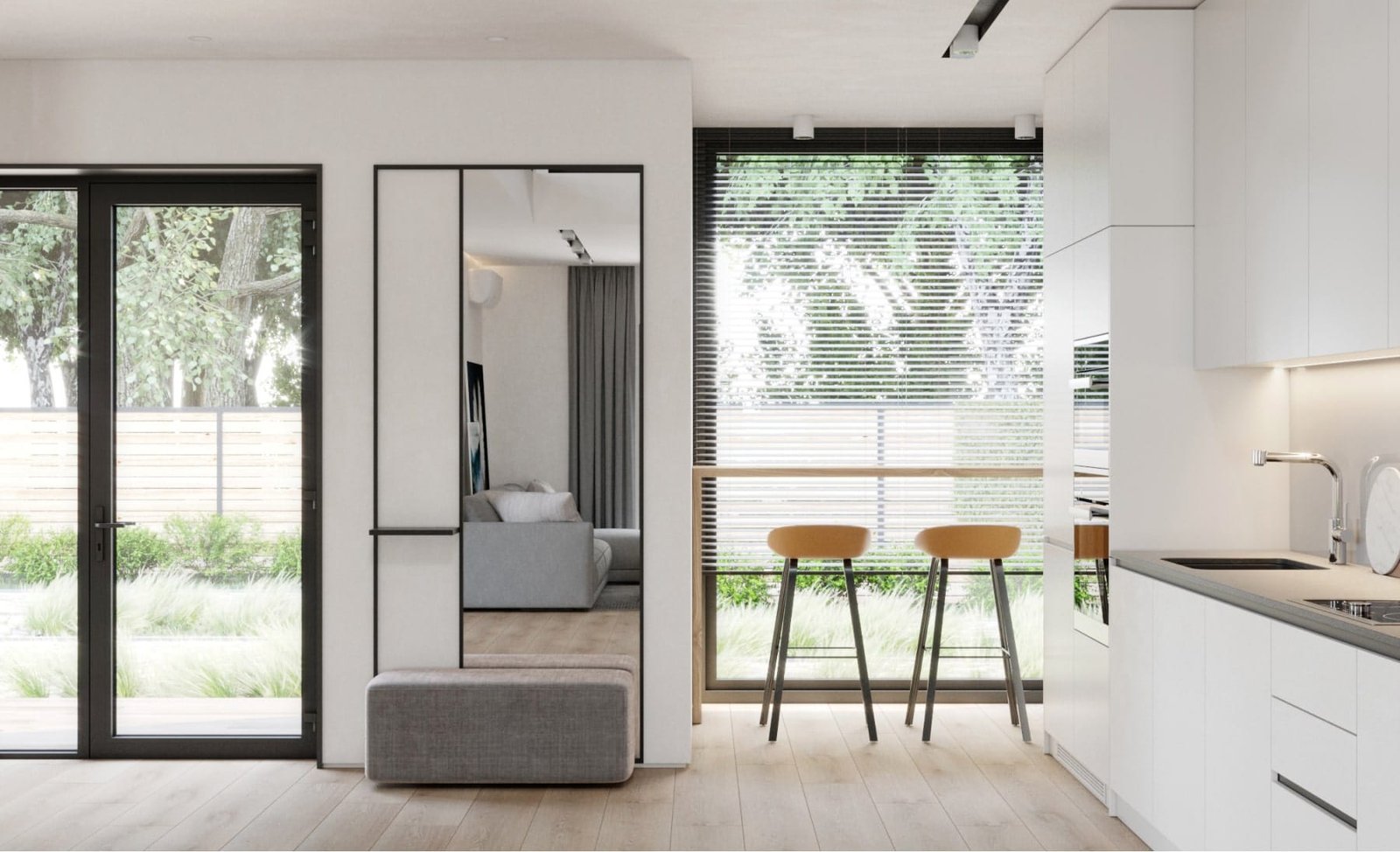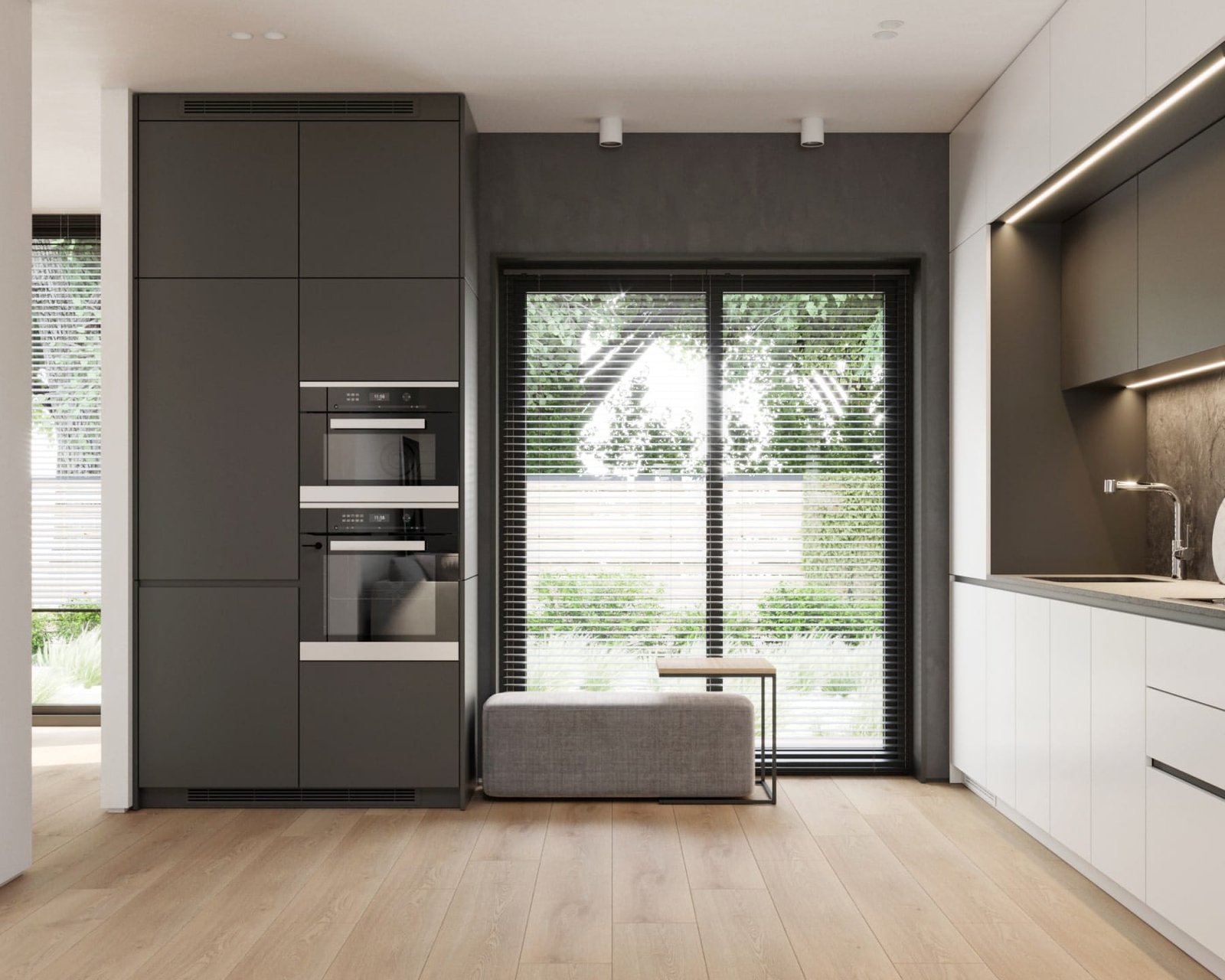 Виконаний з еко-матеріалів по високому стандарту енергоефективності «пасивний будинок». Оснащений рекуперативною системою вентиляції, геотермальним котлом і теплою підлогою.